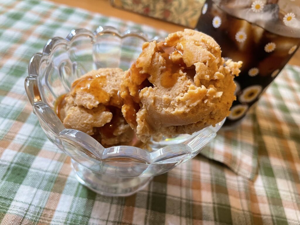 最近、ハマっている「豆腐きな粉アイス」🍨シナモンシロップをかけたら、おやつにピッタリ!