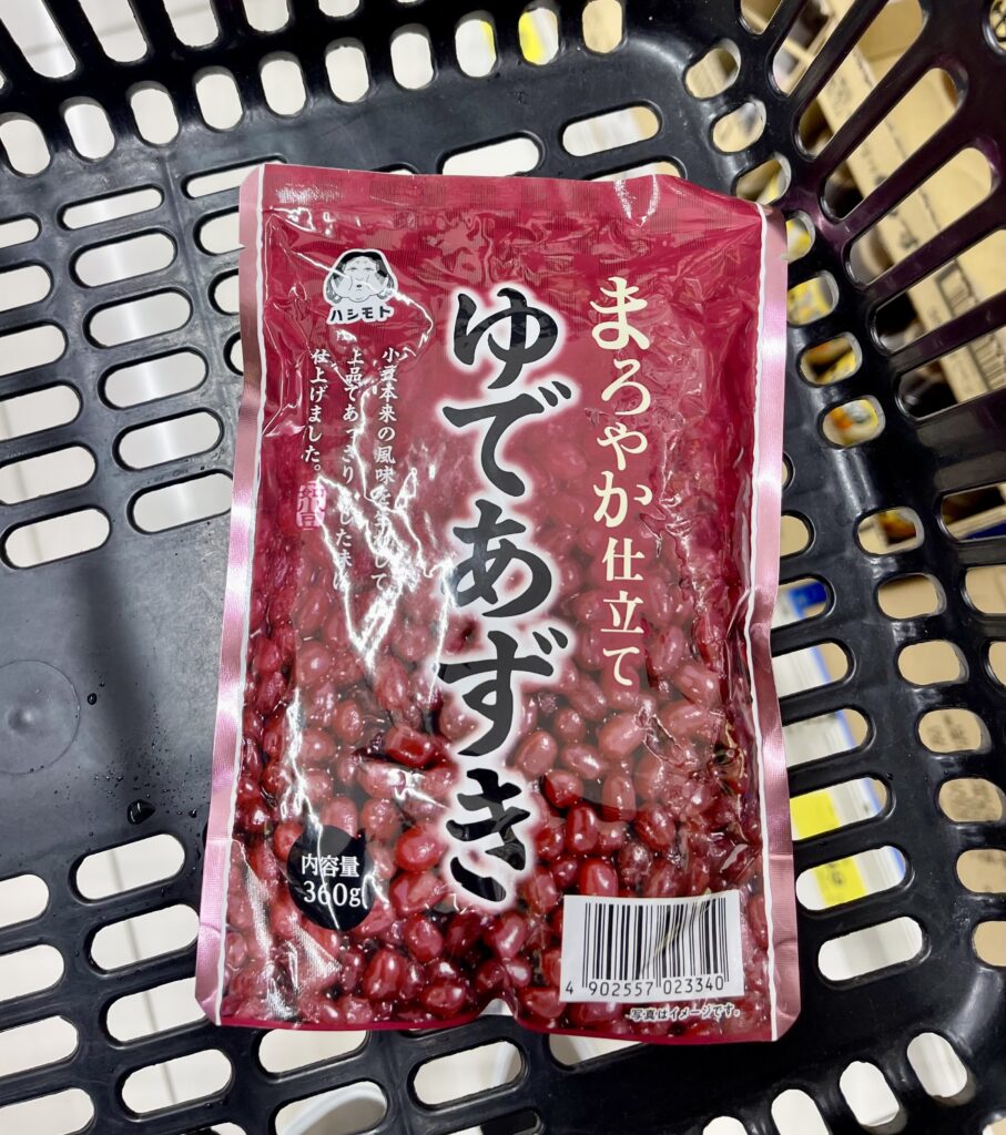 スーパーで見つけた特売品のゆであずき。