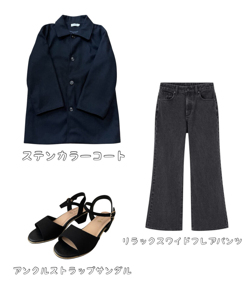 古着屋さんで購入したステンカラーコートは500円。GUで購入したリラックスワイドフレアパンツは、期間限定価格だったし…