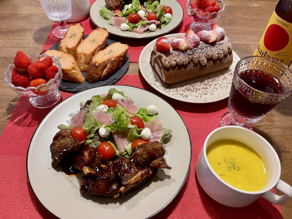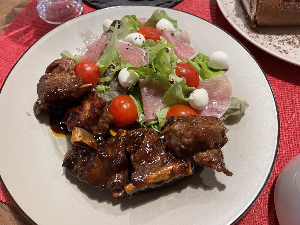 メインは、スペアリブの赤ワイン煮🍷前日からじっくり煮込んだので、お肉がやわらかい〜🤤