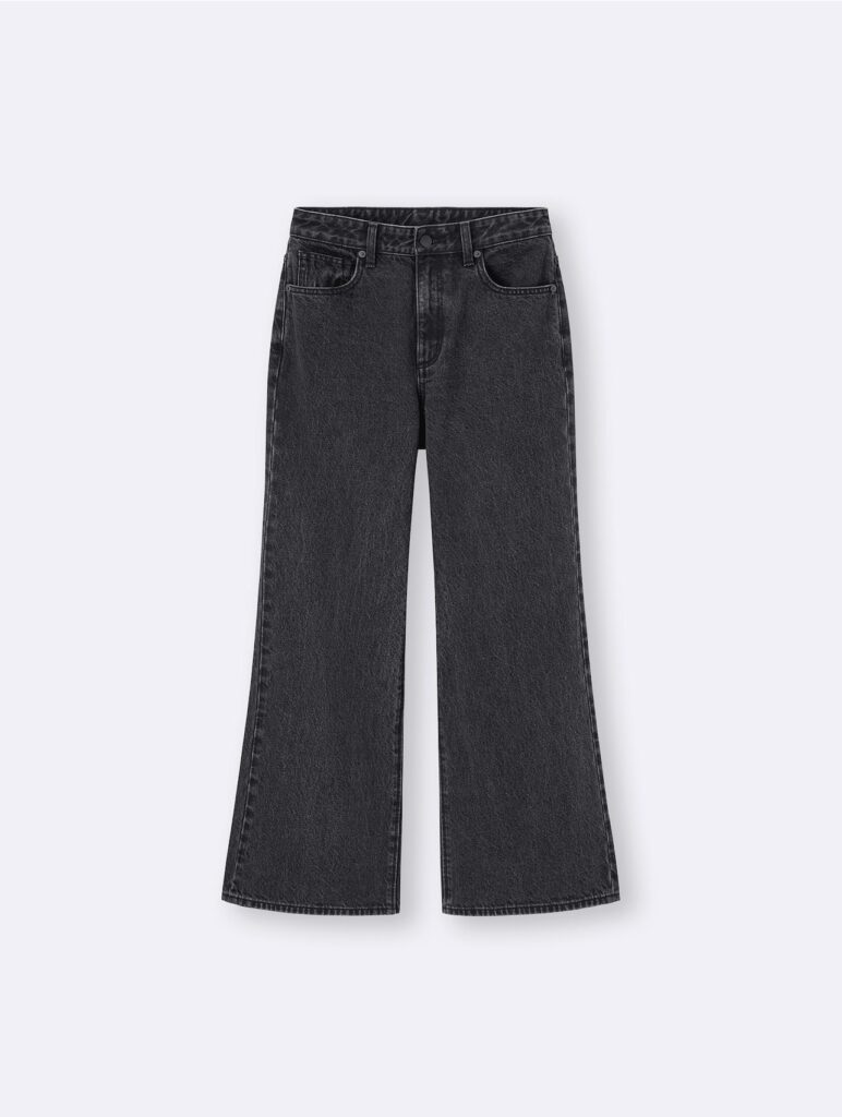 生地に厚みのあるワイドパンツやジーンズで暖かく。合わせやすいカラーが便利です!