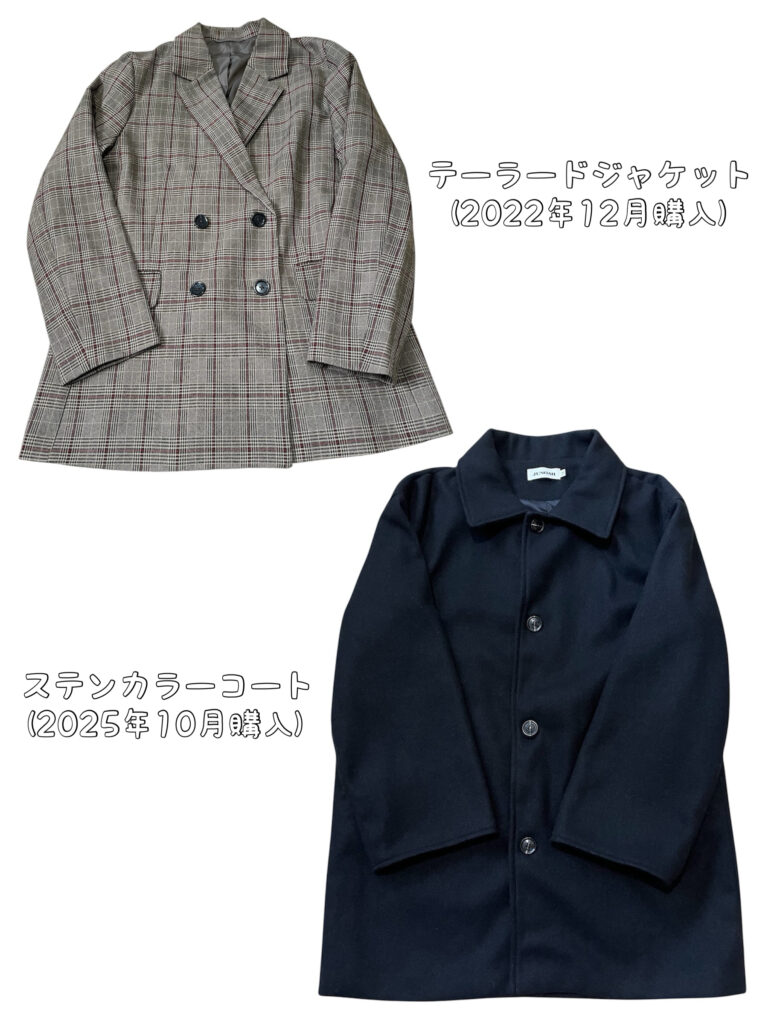 アウターは、気温に合わせて薄手のジャケットと中厚手のコート2着。