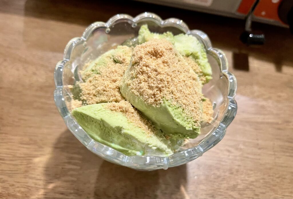 デザートは、わらび餅×ほうじ茶抹茶アイスでミニパフェを作りました🍨