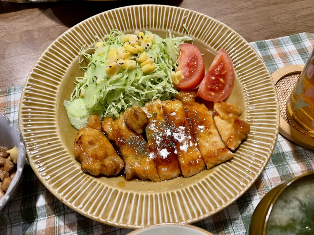ジューシーなお肉に、にんにくのきいた甘辛いソースがからみ、ごはんが進みます🍚