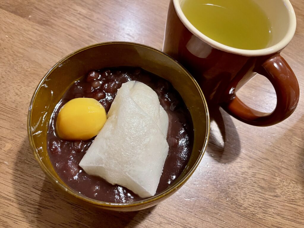 栗の甘露煮が入ったぜんざい。大好きなお餅は、毎日のように食べてもなかなか飽きません。
